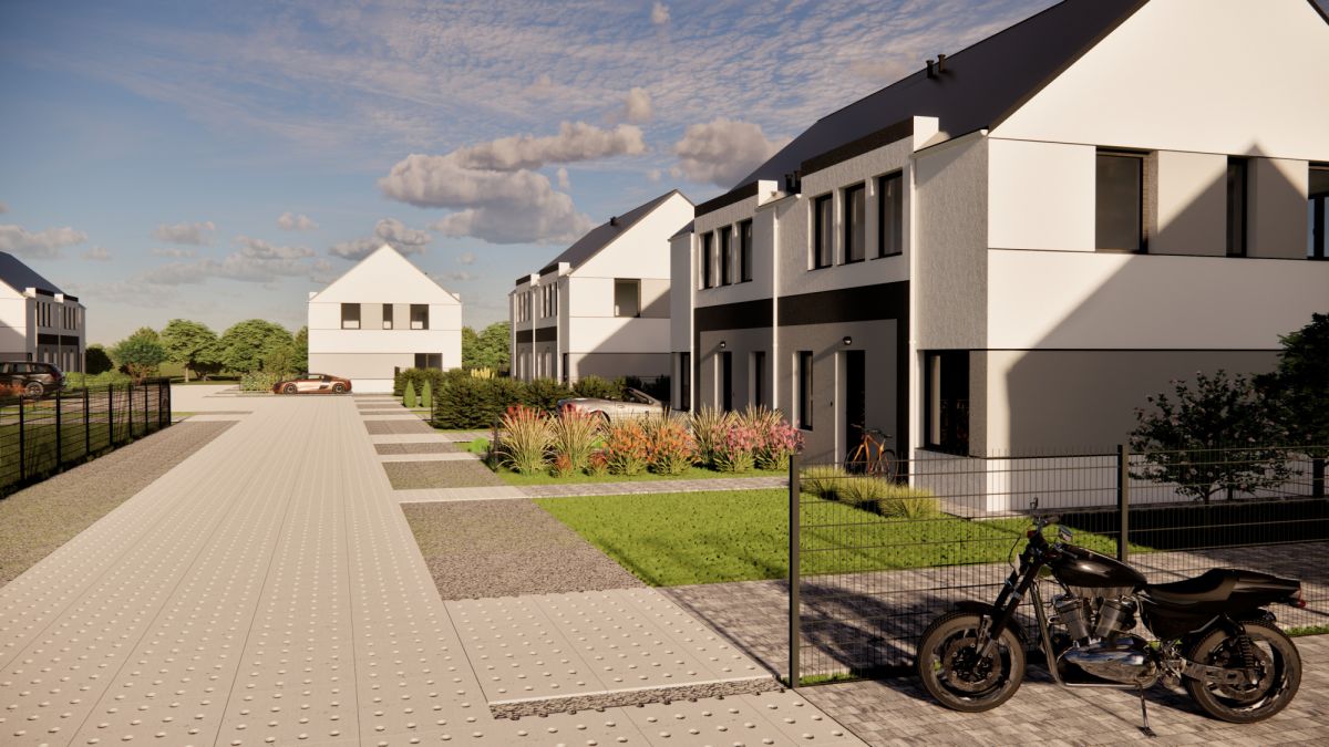 Inwestycja, obecnie w trakcie realizacji, dostępna od IV kwartału 2025 r. W jej skład wchodzą dwukondygnacyjne budynki o nowoczesnej bryle i oryginalnym kształcie. Domy zostały zaprojektowane z myślą o funkcjonalności - otwarte przestrzenie, starannie dobrany układ pomieszczeń oraz wysokiej klasy materiały gwarantują trwałość i komfort użytkowania.